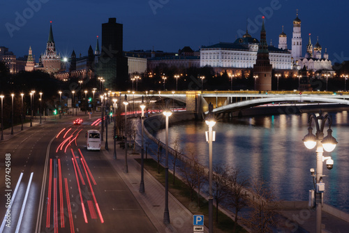 © Андрей Иванов, Obraz premium Moscow Kremlin at night, Russia. View from the Moskva River