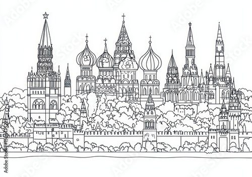 © LeNo, Naklejka premium Moscow Kremlin Line Drawing