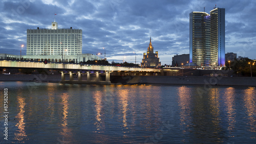 Naklejka premium Moscow Russia City Center View at Night
