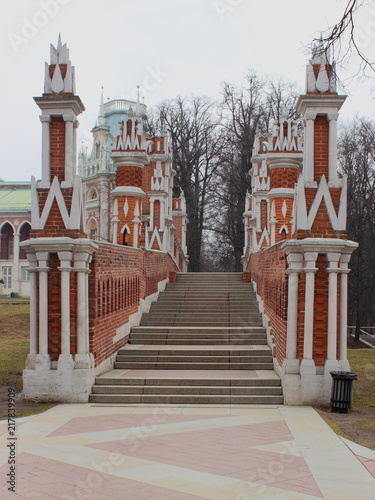 Obraz premium Moscow / Russia: Tsaritsyno Museum-reserve in spring - Shaped bridge,...