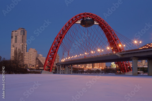 Naklejka premium Moscow, view of the "Zhivopisnyy" bridge, Marshal Zhukov Avenue