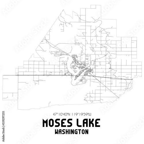 Obraz premium Moses Lake Washington. US street map with black and white lines.
