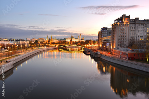 Naklejka premium Moskva river in Moscow. Kremlevskaya embankment. Moscow Kremlin. Early morning. Sunrise.