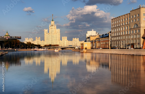 Fototapeta premium Moskvoretskaya embankment and high-rise building on the Kotelnicheskaya...