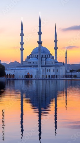 © Rois, Fototapeta premium Mosque and Water Reflection at Sunset