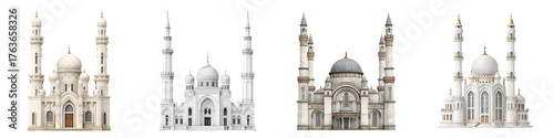 Fototapeta premium Mosque Architecture: Four Beautiful Islamic Buildings on White