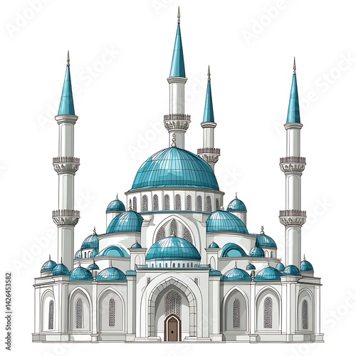 © Mes, Fototapeta premium Mosque illustration, Islamic architecture, white and blue