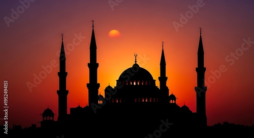 © Mst, Fototapeta premium Mosque Silhouette at Sunset