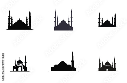 Fototapeta premium Mosque Silhouette Collection Vector Illustration