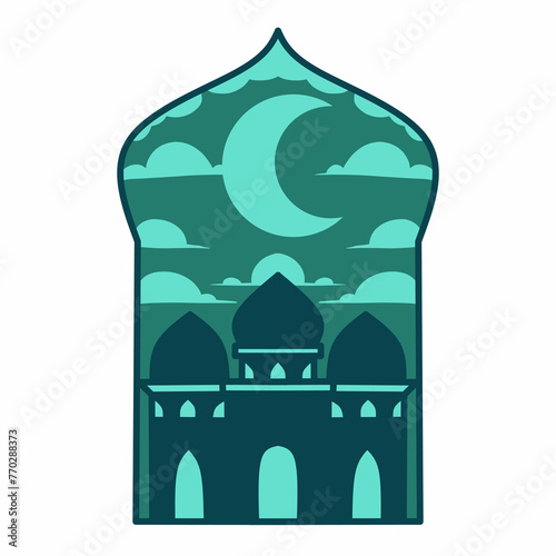 © Instinctillustration, Obraz premium mosque silhouette set vector Ramadhan kareem