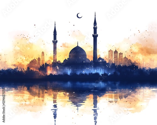 © Wawan, Fototapeta premium Mosque Silhouette Sunset Reflection