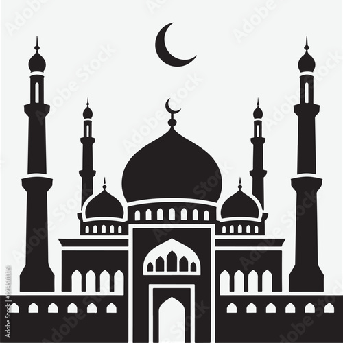 Fototapeta premium Mosque Silhouette with Crescent Moon.