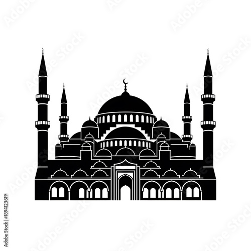 Fototapeta premium Mosque silhouette with minarets and dome.