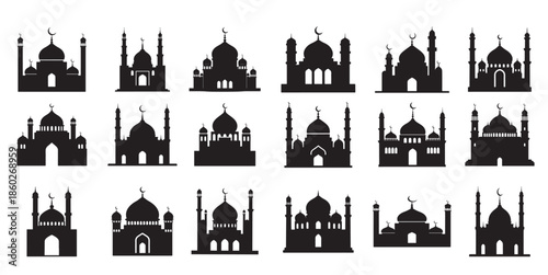 Obraz premium mosques silhouette white background