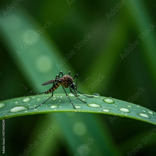 © aan, Naklejka premium Mosquito on DewCovered Leaf.