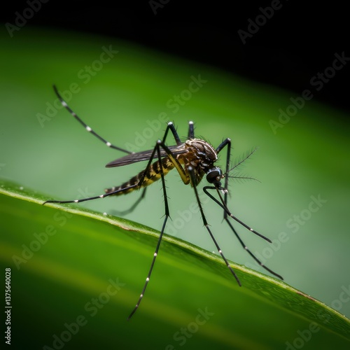 © aan, Fototapeta premium Mosquito on Green Leaf Closeup.