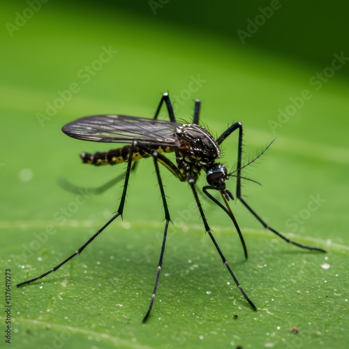 © adifa, Fototapeta premium Mosquito on Green Leaf Closeup. (1)