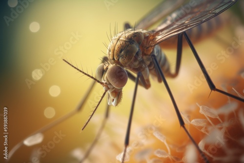 © nsit0108, Fototapeta premium Mosquito on skin macroview. Generate Ai