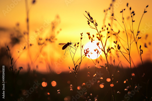 Obraz premium Mosquito silhouette against a glowing summer sunset