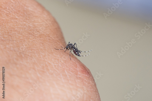 © azrisuratmin, Obraz premium Mosquito sucking human blood