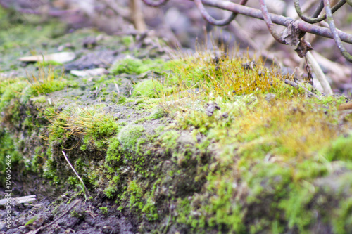 © daily_creativity, Obraz premium moss and lichen concrete fence