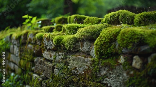 © CryptoCanvas, Obraz premium Moss covered ancient stone barrier