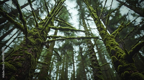 © kittipoj, Naklejka premium Moss-Covered Canopy in Lush Forest Landscape Photographed in Cinematic Style