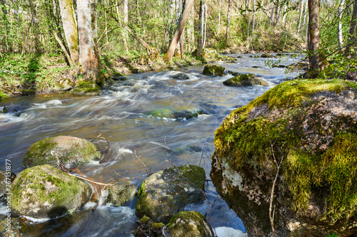 Fototapeta premium Moss covered stones and beautiful river scenery