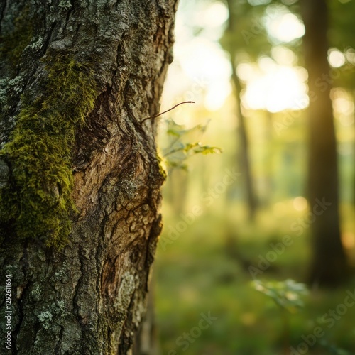 © Nurul, Obraz premium Moss-covered tree trunk in sunlit forest