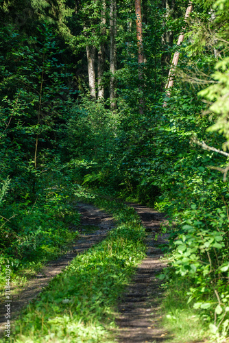 © Martins Vanags, Fototapeta premium moss covered tree trunks in wild forest