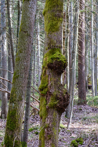 © Martins Vanags, Naklejka premium moss covered tree trunks in wild forest