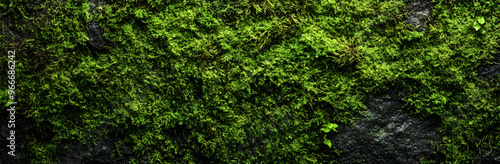 Fototapeta premium Moss green texture. Moss background. Green moss on grunge texture, background. Long web banner