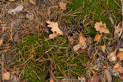 © Svitlana, Fototapeta premium moss leaves cones autumn