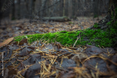 Obraz premium moss on a deadfall in the forest