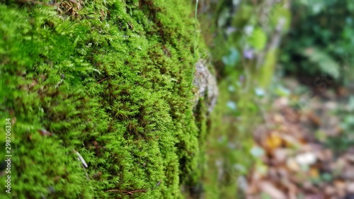 Fototapeta premium Moss on a tree trunk in autumn