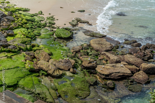 Fototapeta premium Moss on rocks at sea