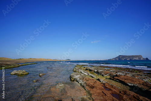 © SooHyun, Fototapeta premium moss rock beach and clear water