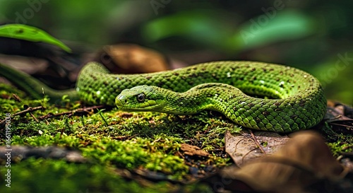 © Irt, Fototapeta premium Moss Snake Blending Seamlessly into a Forest Floor