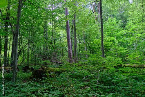 © Aleksander Bolbot, Obraz premium Moss wrapped part of broken hornbeam lying