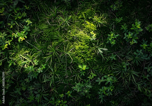 Obraz premium Mossy Grass Texture with Spotlight and Shadows
