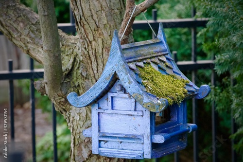 © Ephaptic, Fototapeta premium Mossy purple birdhouse