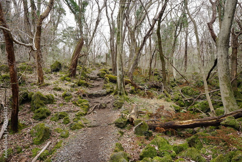 © SooHyun, Fototapeta premium mossy rocks and bare trees in early spring forest