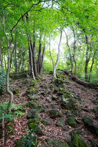 © SooHyun, Fototapeta premium mossy rocks and old trees in autumn forest