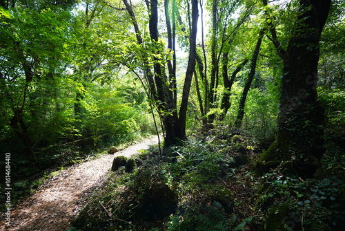 Obraz premium mossy rocks and old trees in autumn forest