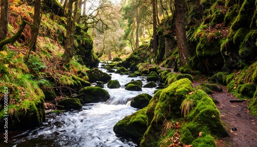 © diinulkha, Obraz premium Mossy stream through a forest