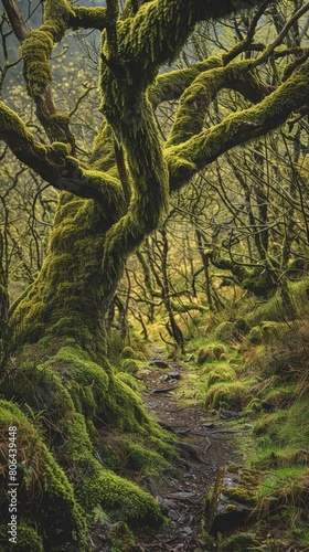 © kittipoj, Fototapeta premium Mossy Tree in Secluded Woodland Grove with Untouched Cinematic Photography