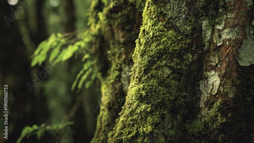© imagepocket, Obraz premium Mossy Tree Trunks in a Lush Forest