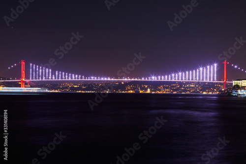© bondvit, Fototapeta premium Most Bosfor (15 lipca Most Męczenników) w Stambule, Turcja, panoramiczny widok w nocy