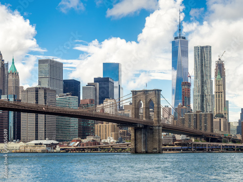 Naklejka premium Most Brookliński i panoramę Dolnego Manhattanu w Nowym Jorku