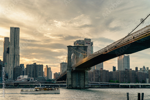 © STUDIO MELANGE, Obraz premium Most Brookliński. Most jest często przedstawiany na szerokich ujęciach panoramy Nowego Jorku w telewizji i filmie.